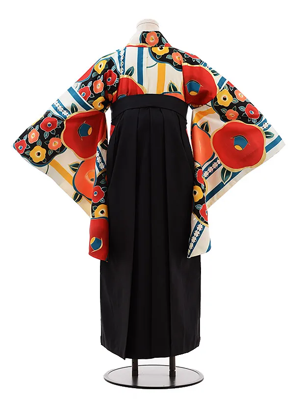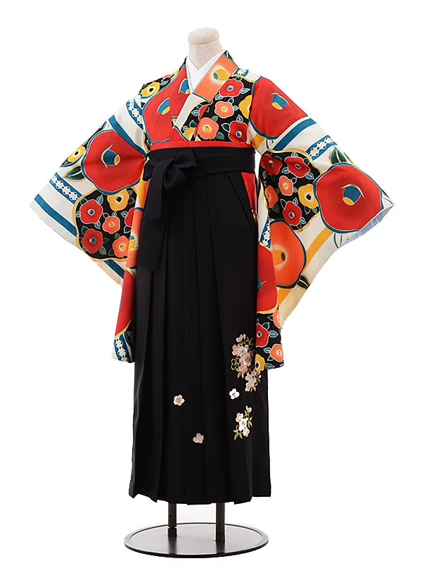 卒業式袴レンタルh103白地 椿×黒