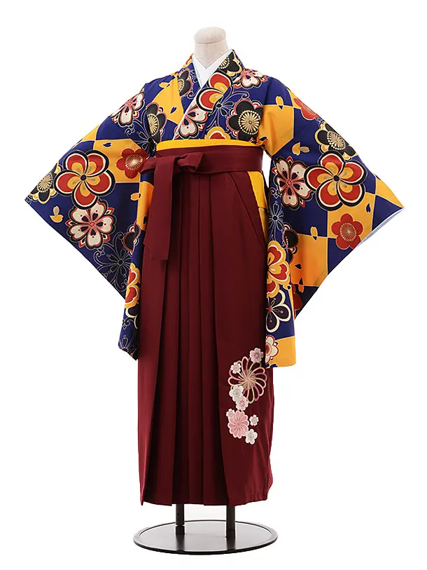 卒業式袴レンタルh112紺地 梅×エンジ色
