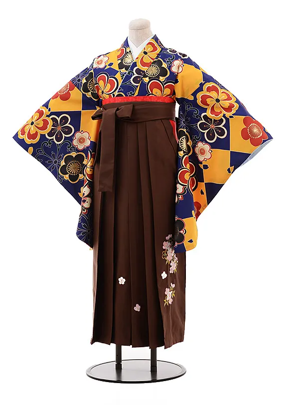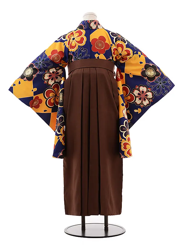卒業式袴レンタルh113紺地 梅×ブラウン