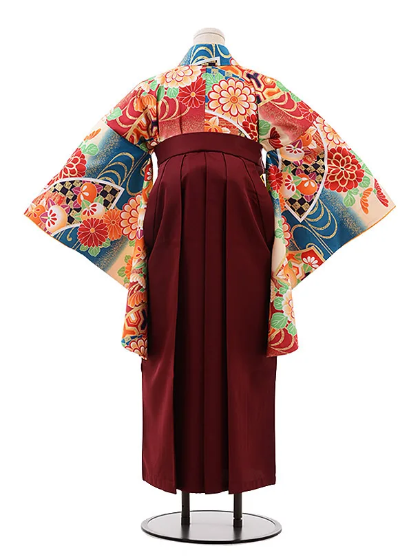 卒業式袴レンタル h118 ひいな クリーム 赤ぼかし 花×エンジ袴