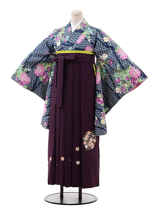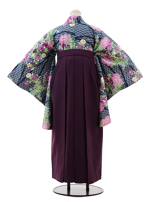 卒業式袴レンタル h127 紺 緑 花×パープル袴