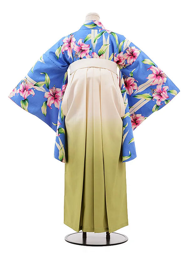 卒業式袴レンタル h131 ブルー地 ゆり×クリームぼかし袴
