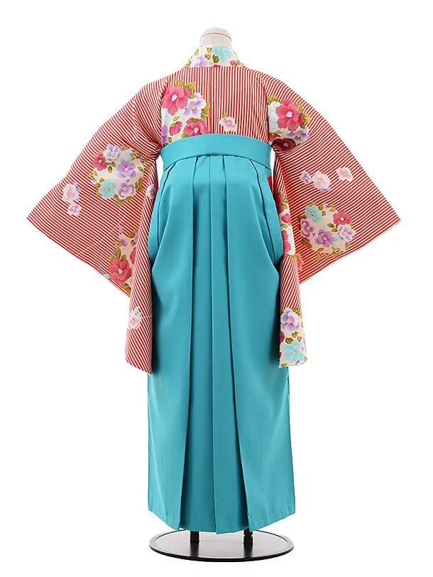 卒業式袴レンタル h135 赤ストライプ 椿×ターコイズ袴