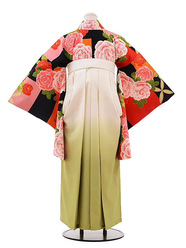 卒業式袴レンタル h139 黒 ピンク バラ×クリームぼかし袴