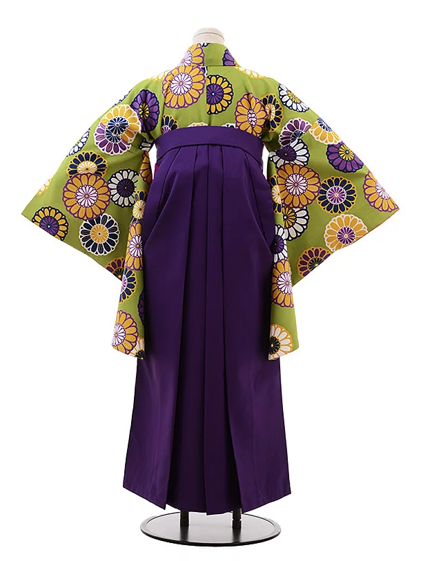卒業式袴レンタル h153 グリーン地 菊×パープル袴