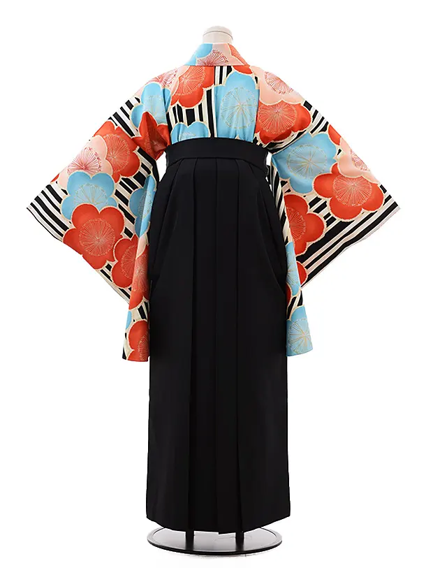 卒業式袴レンタル h159 九重 黒ストライプ 梅×黒袴