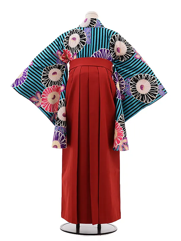 卒業式袴レンタル h160 紅一点 ターコイズストライプ 花×エンジ袴