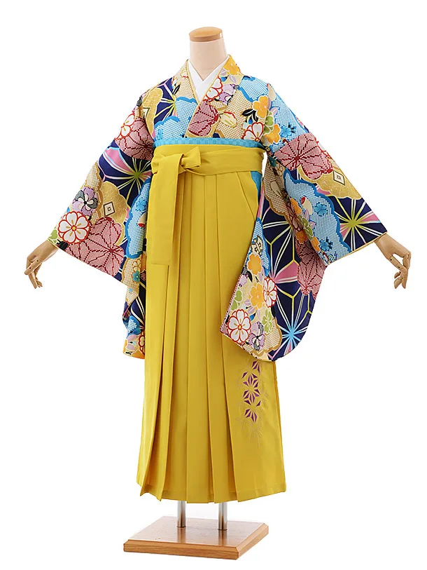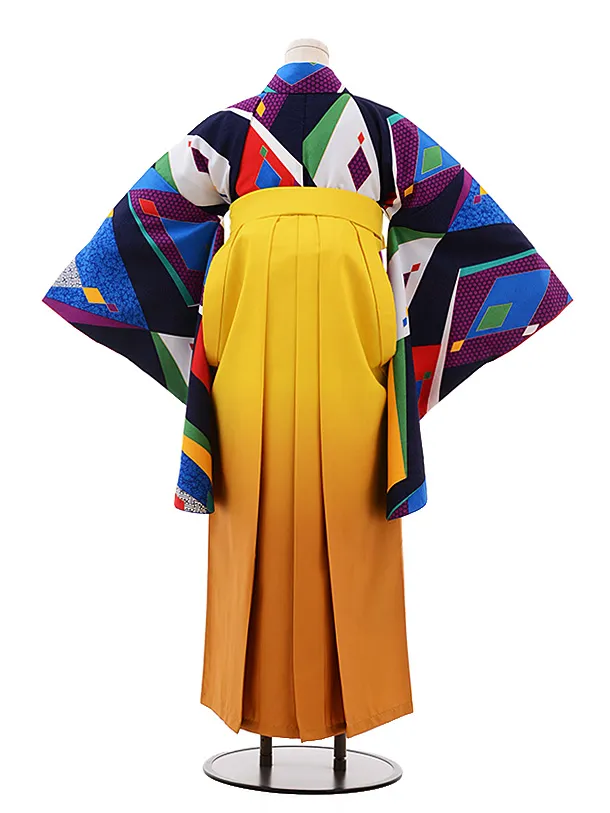 卒業式袴レンタル h166 紺地 ダイヤ柄×からし袴