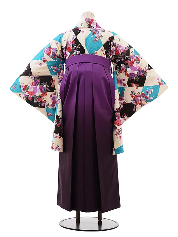 卒業式袴レンタル h170 クリーム地 ダイヤ 小花×パープルぼかし袴