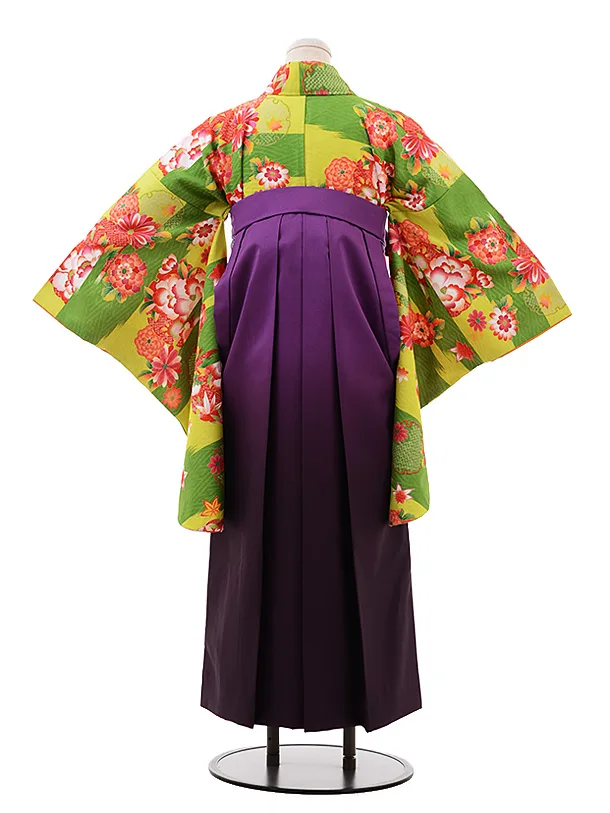 卒業式袴レンタル h171 グリーン地 雪輪 花×パープルぼかし袴