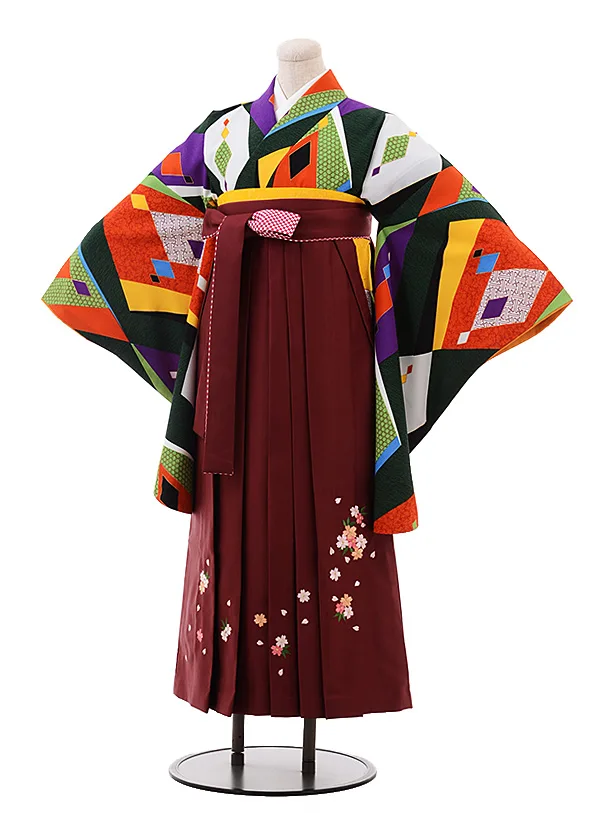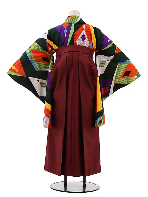 卒業式袴レンタル h172 グリーン地 ダイヤ柄×エンジ袴