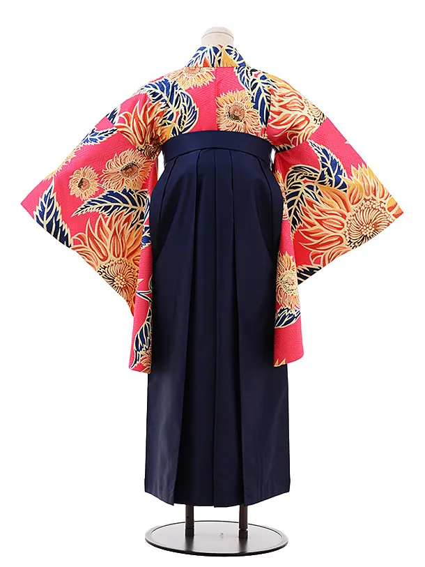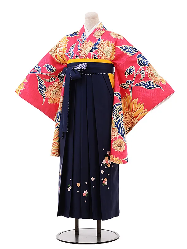 卒業式袴レンタル h173 ピンク地 花×紺袴