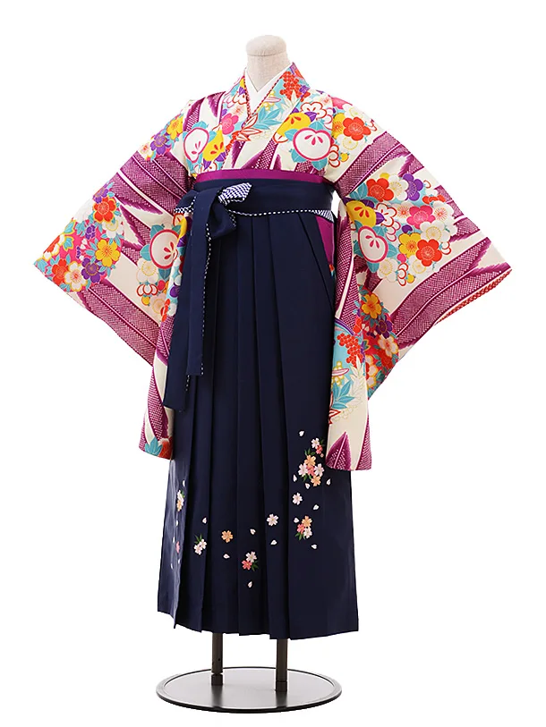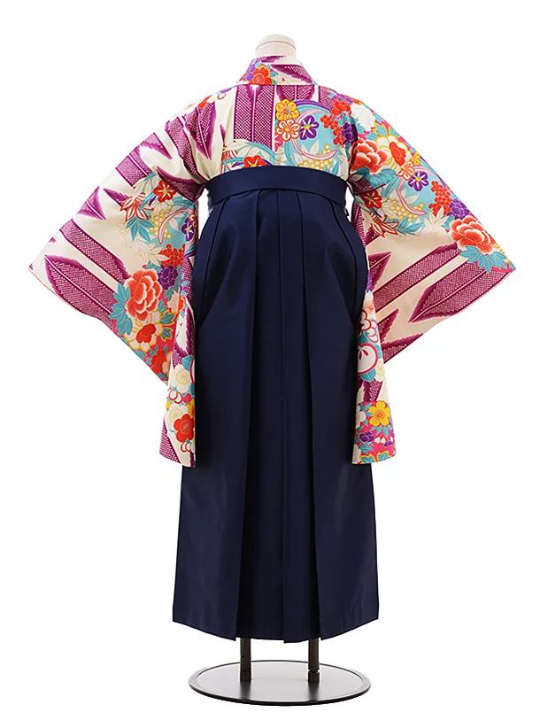 卒業式袴レンタル h174 白地 矢柄花×紺袴