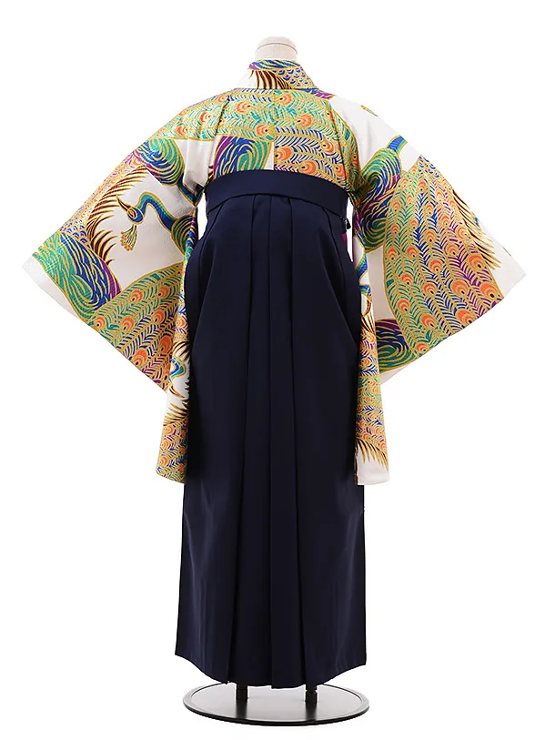 卒業式袴レンタル h179 白地 ゴールド 孔雀×紺袴