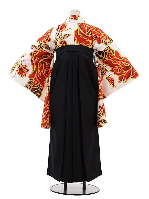 卒業式袴レンタル h181 白地 赤バラ×黒袴