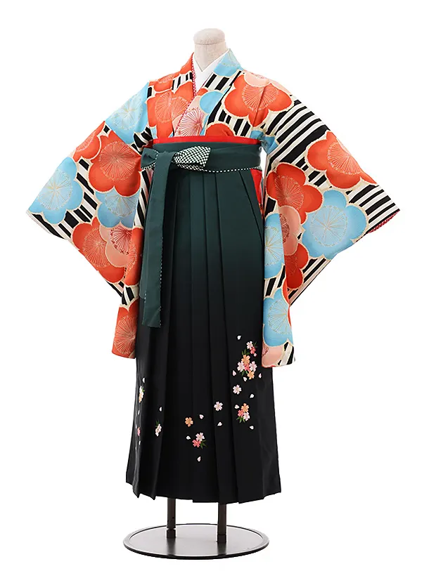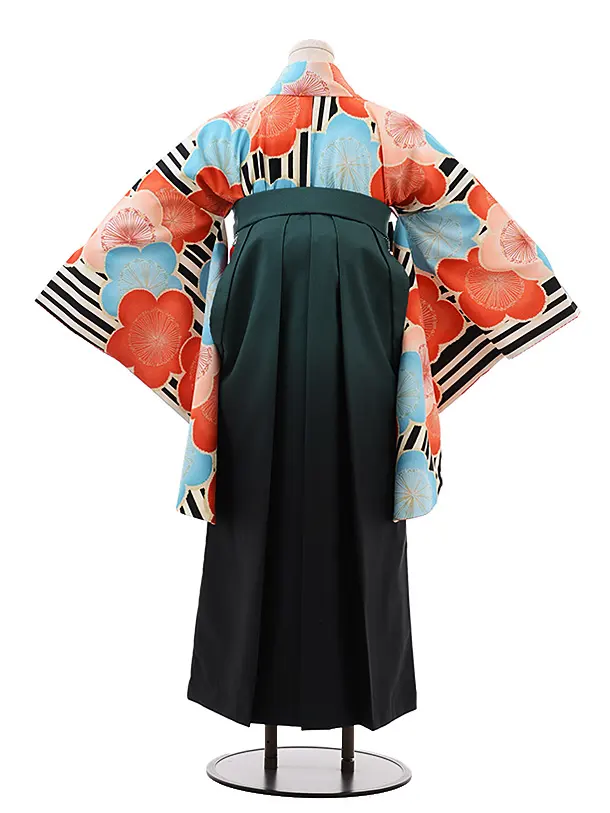 卒業式袴レンタル h185 黒ストライプ梅×グリーンぼかし袴