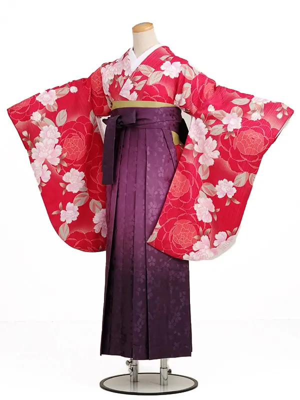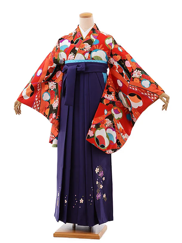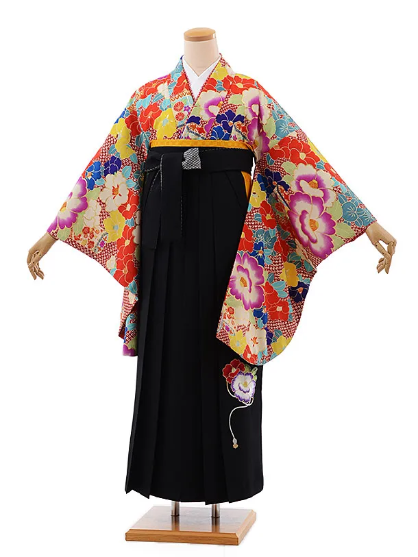 卒業式袴レンタル h195 赤地 大花×黒袴
