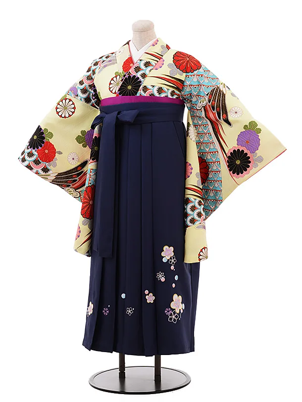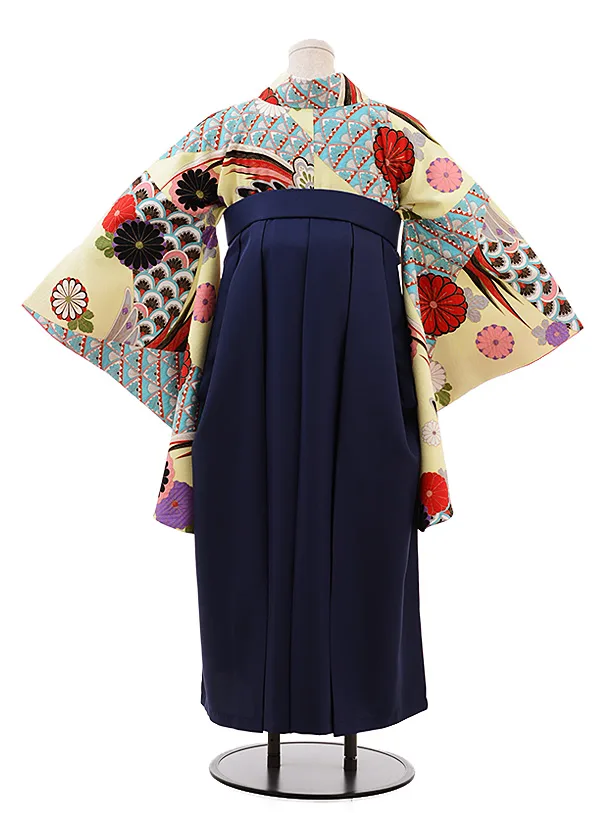 【ふくよかサイズ】卒業式袴レンタル h198 クリーム地 菊 古典×紺袴