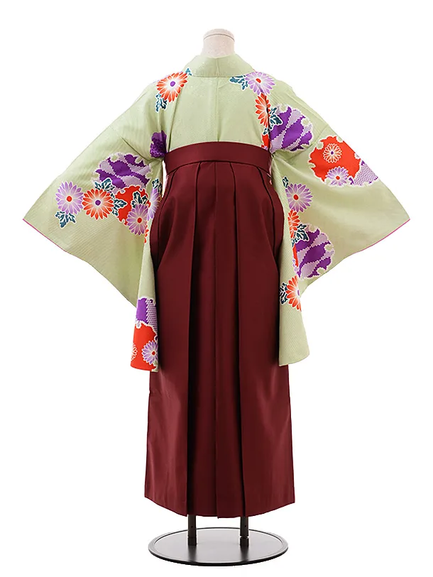 卒業式袴レンタル h207 グリーン 雪輪×エンジ袴