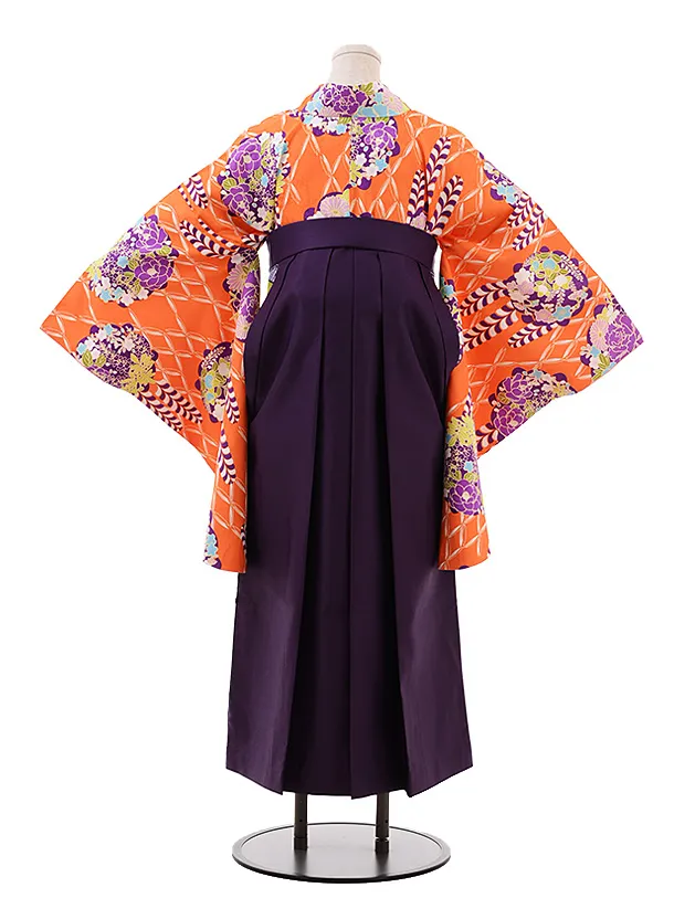 卒業式袴レンタル h212 オレンジ 花×パープル袴