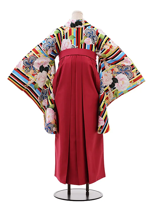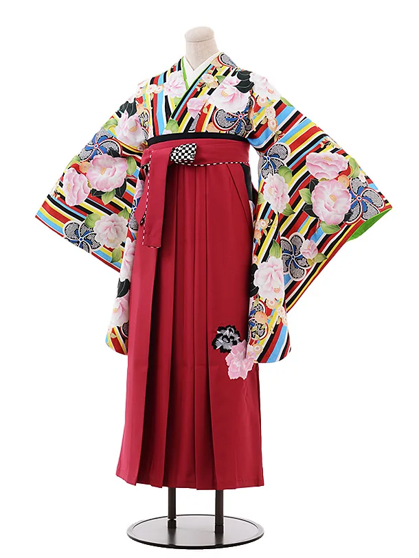 卒業式袴レンタル h226 赤ストライプ 椿×ローズ袴