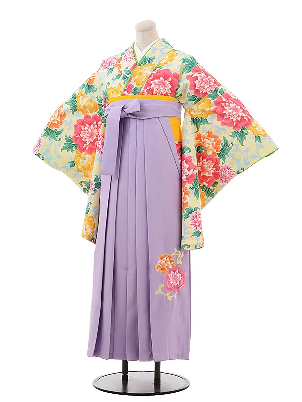 卒業式袴レンタル h232 クリーム地 ぼたん×すみれ色袴