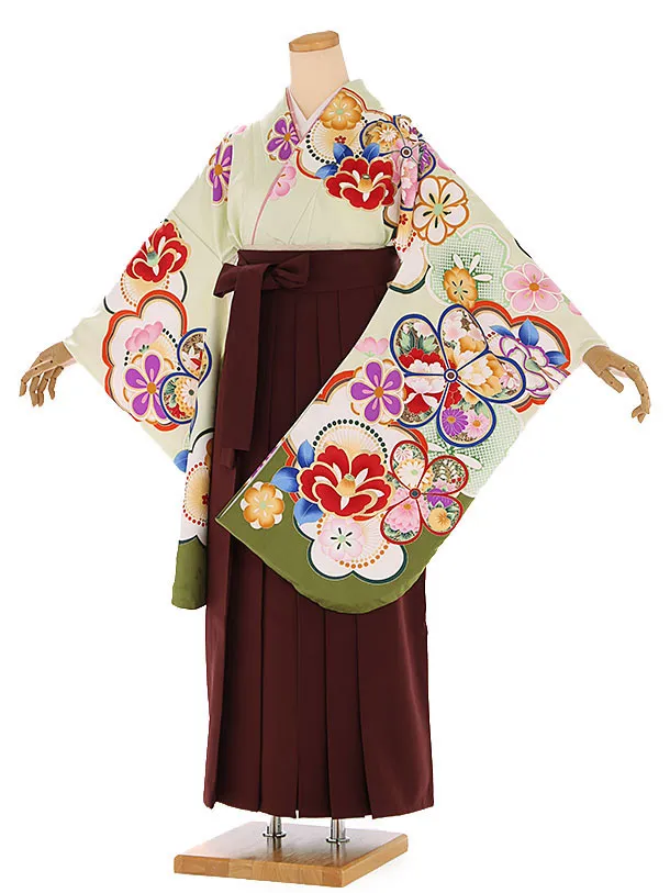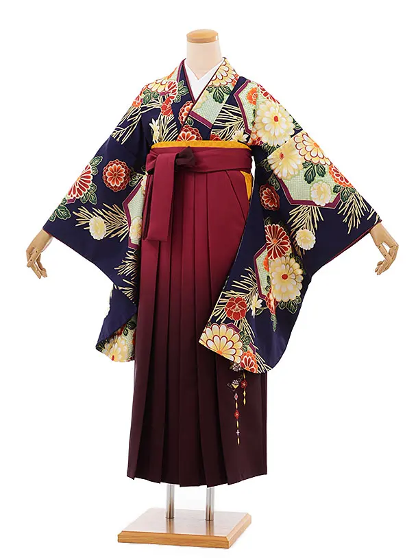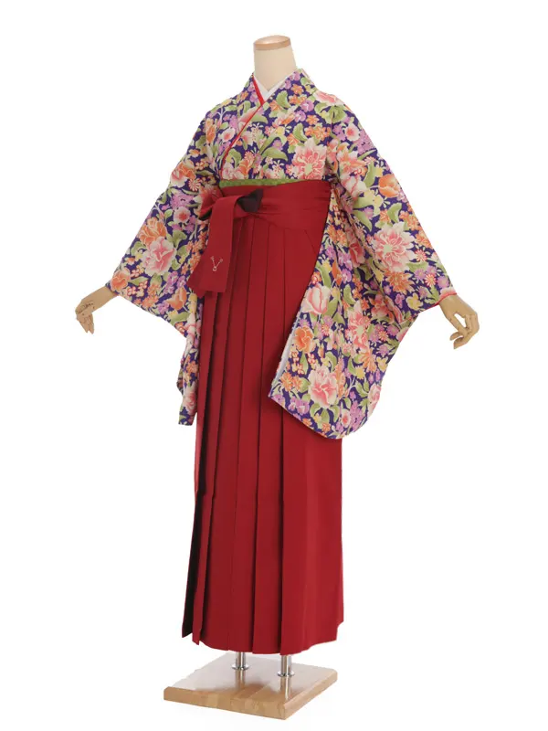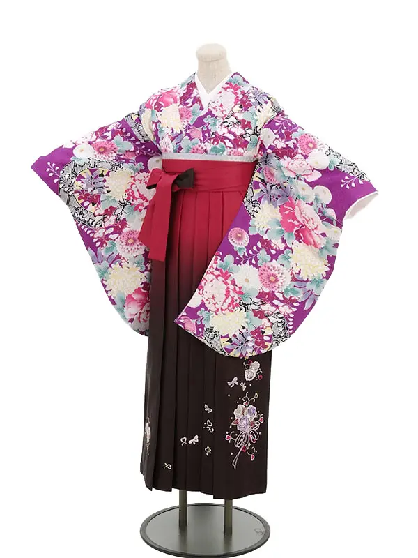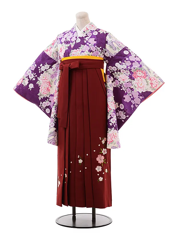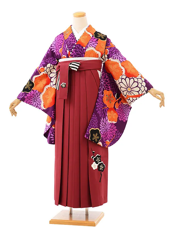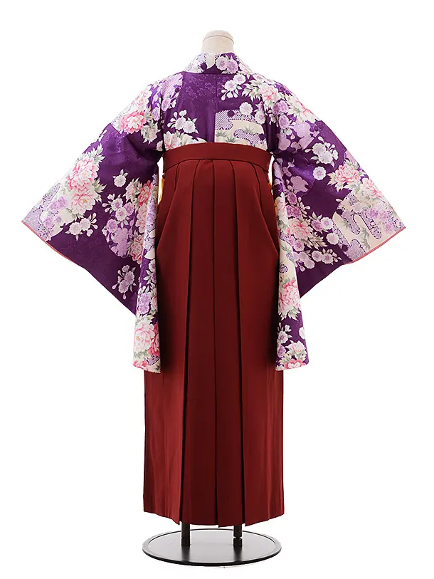 卒業式袴レンタル h239 パープル地 梅 ぼたん×エンジ袴
