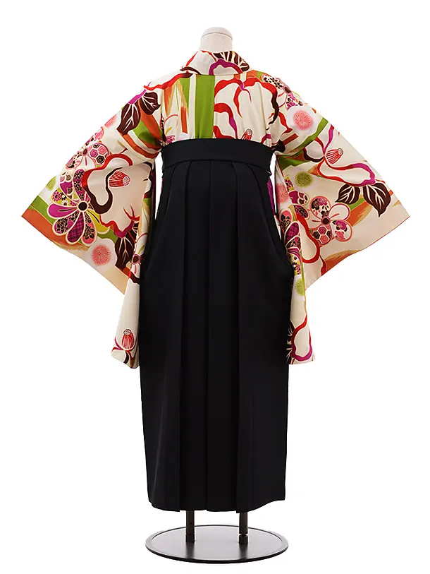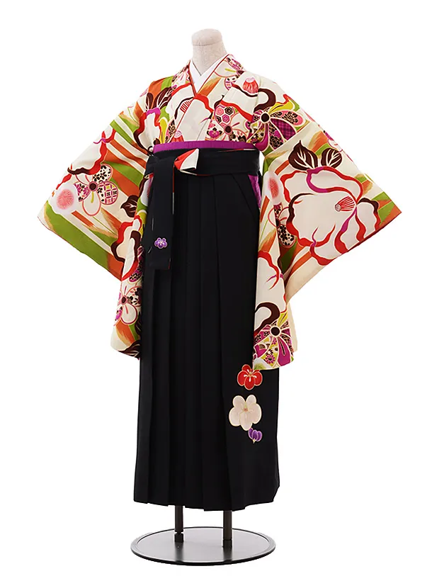 卒業式袴レンタル h240 紅一点 クリーム地 梅椿×黒袴
