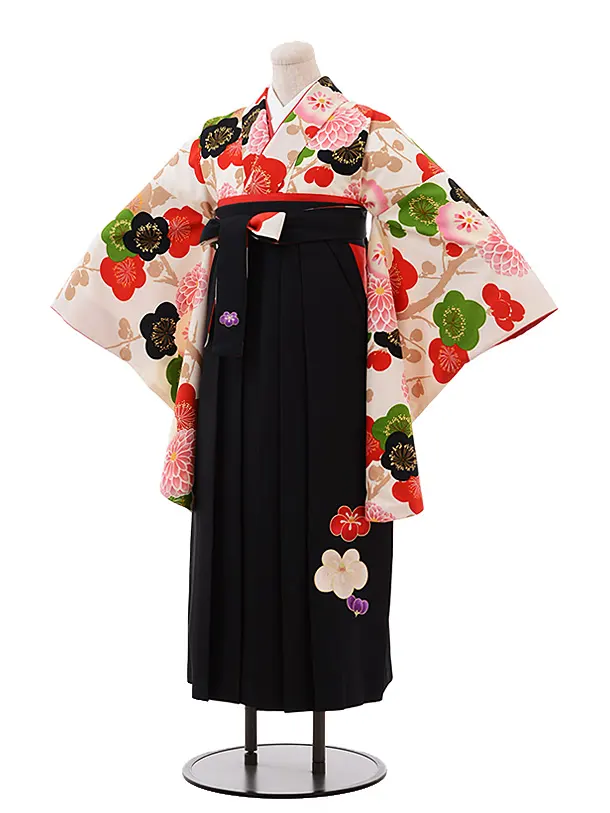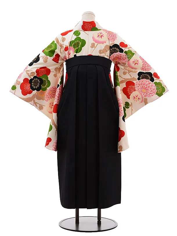 卒業式袴レンタル h241 紅一点 クリーム地 梅×黒袴