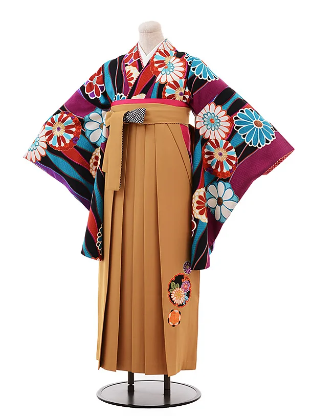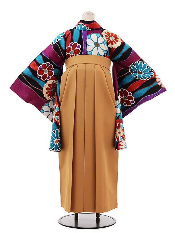 卒業式袴レンタル h245 九重 パープル地 菊×からし色袴