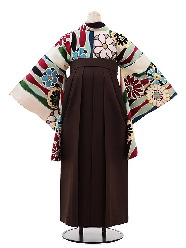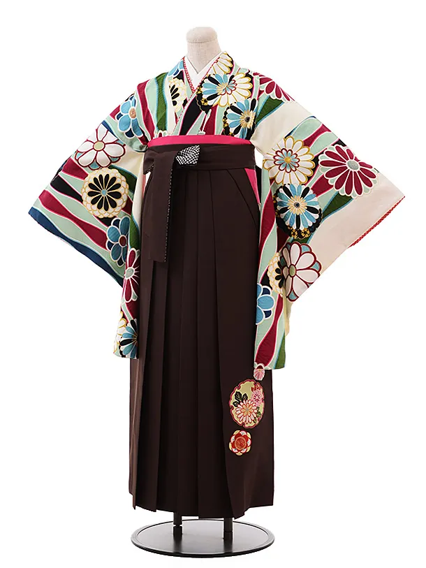 卒業式袴レンタル h246 九重 クリーム地 菊×茶色袴