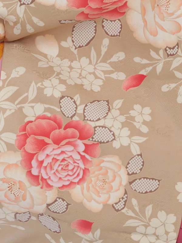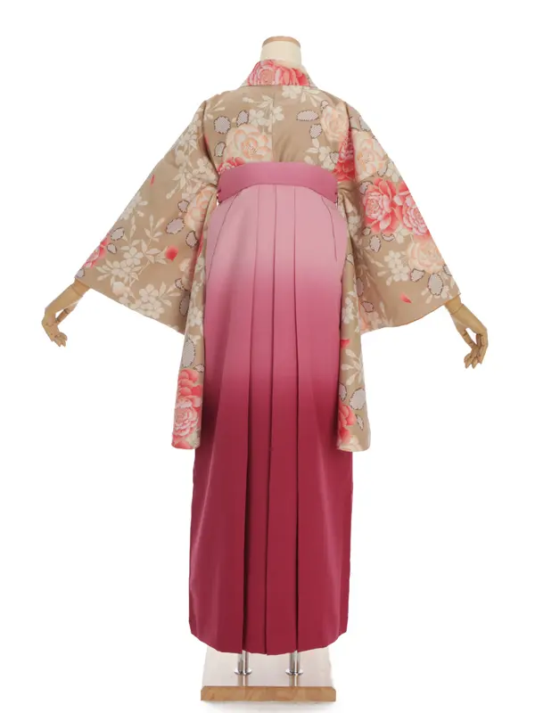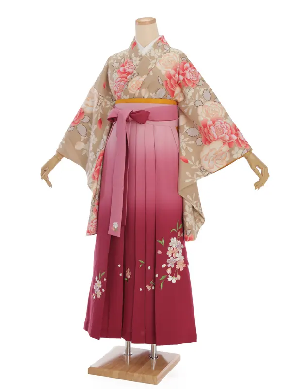 卒業袴レンタルh257 ベージュ ぼたん x ピンクぼかし袴