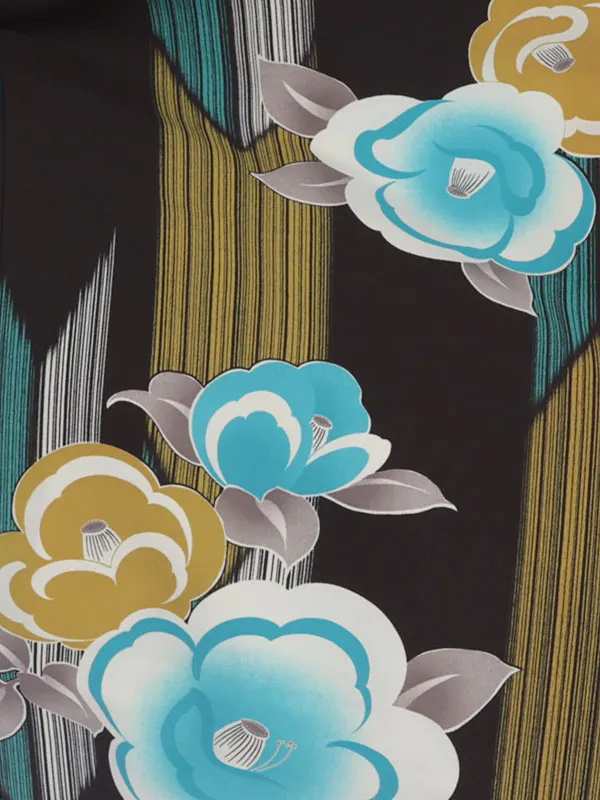 卒業袴レンタルh262 黒地 水色 つばき x ぼかし袴
