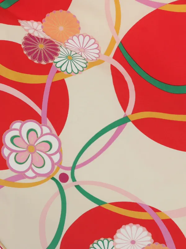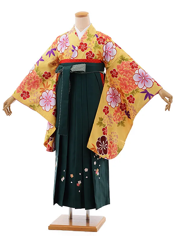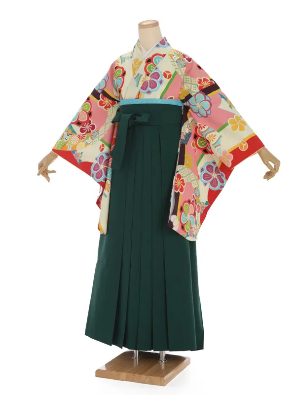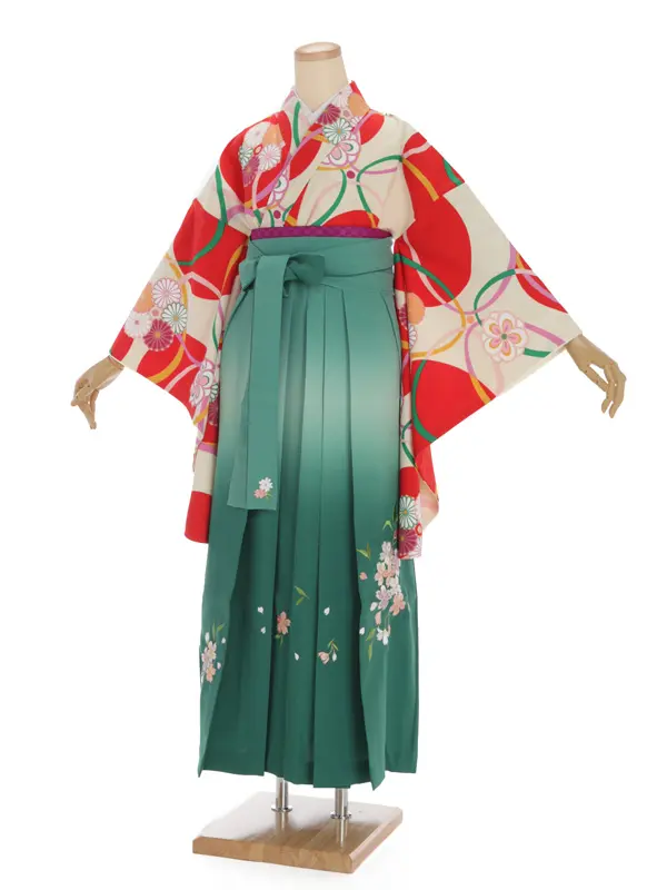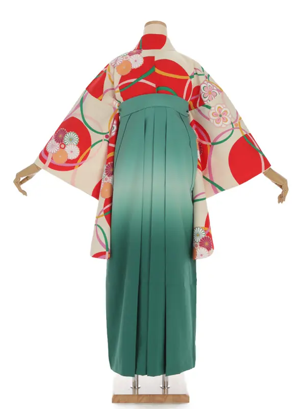 卒業袴レンタルh268 クリーム地 菊と輪 x ぼかし袴