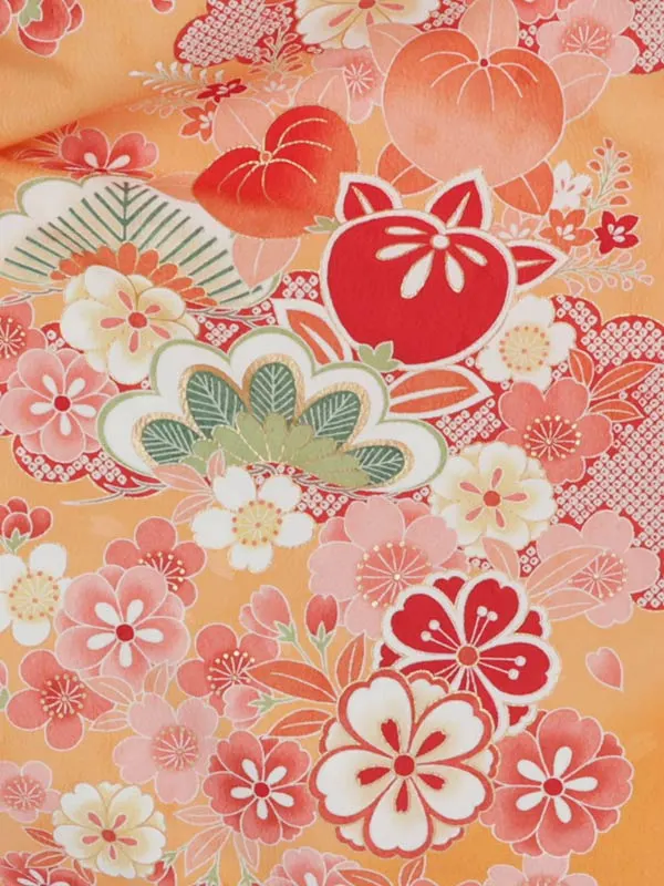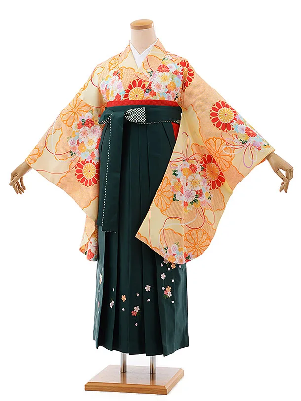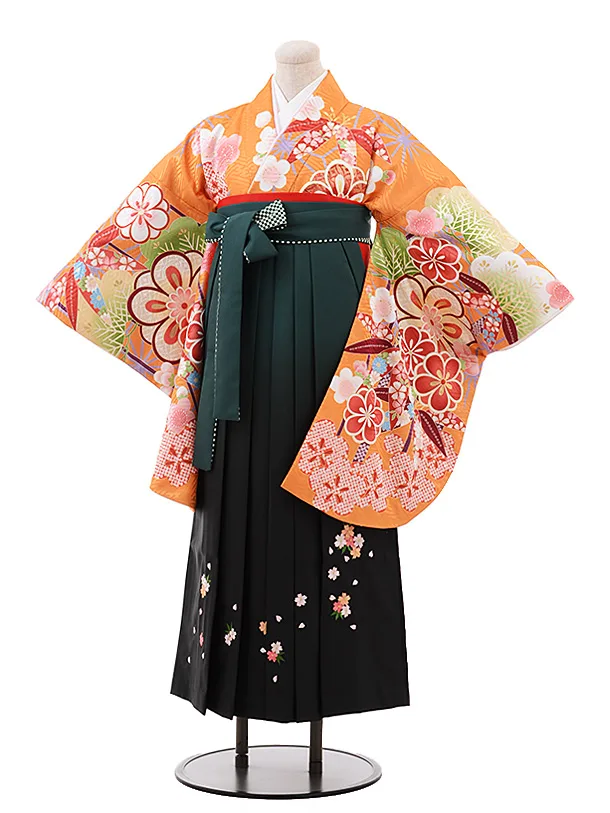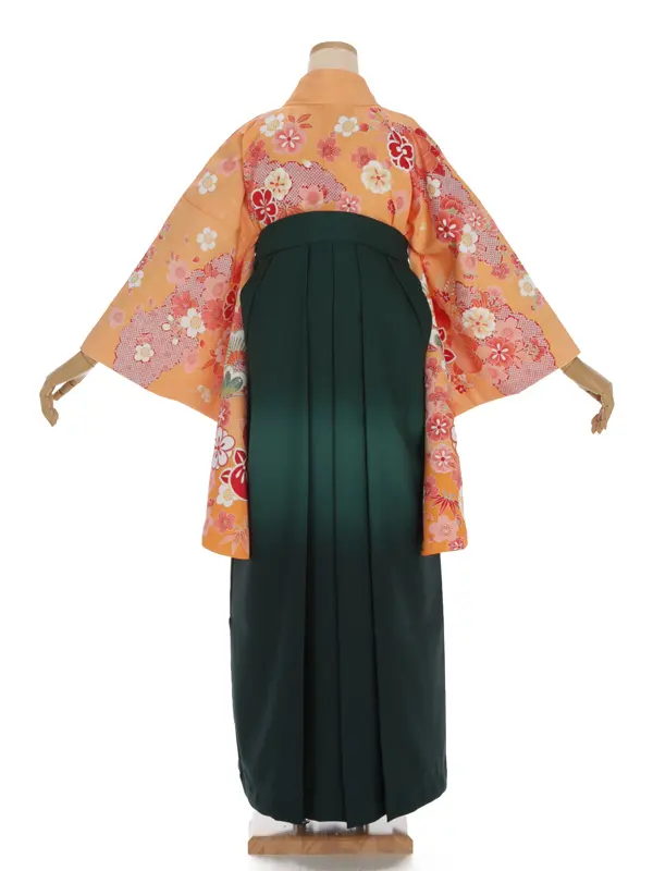 卒業袴レンタルh270 オレンジ 花柄 x グリーンぼかし袴