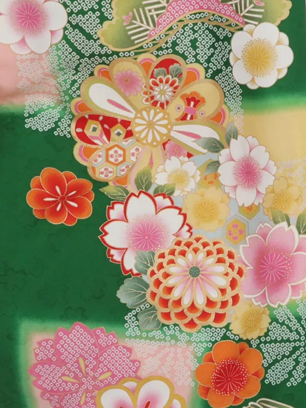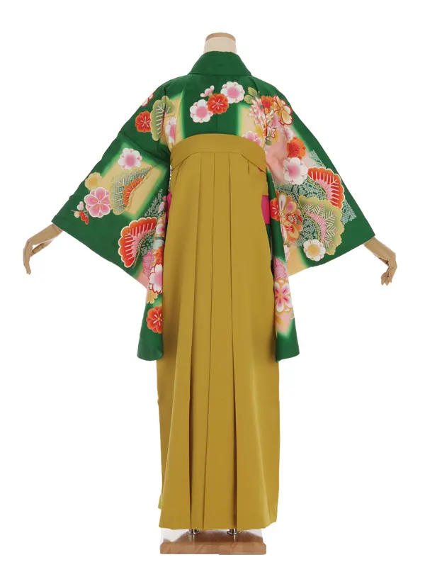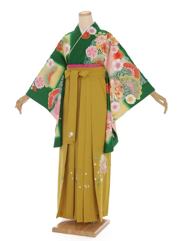卒業袴レンタルh272 グリーン地 古典柄 x からし袴