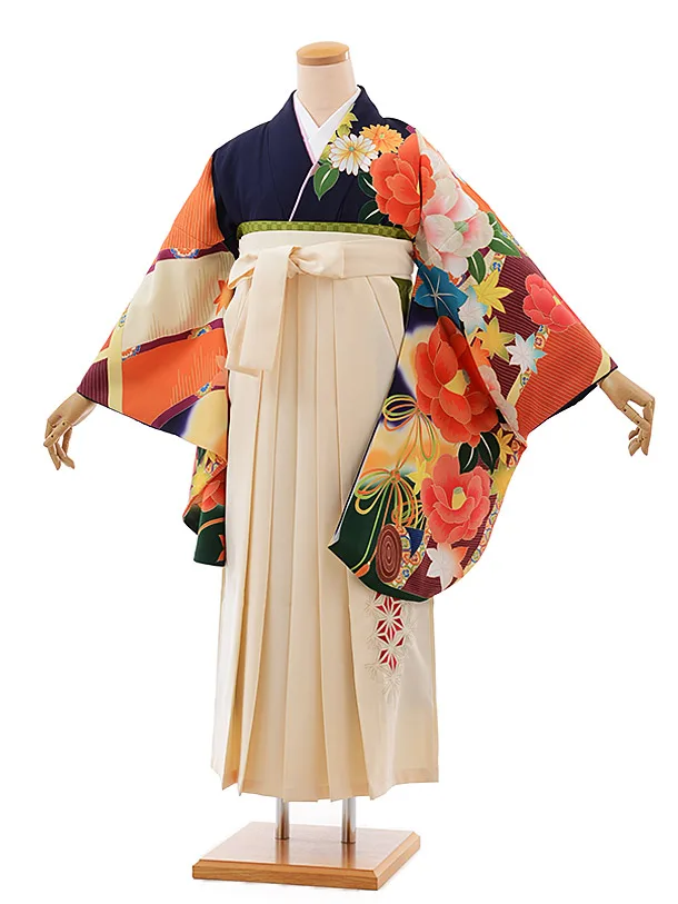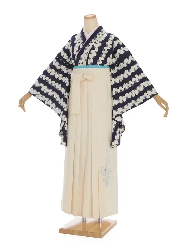 卒業袴レンタルh277 永楽屋 紺 x ホワイト袴