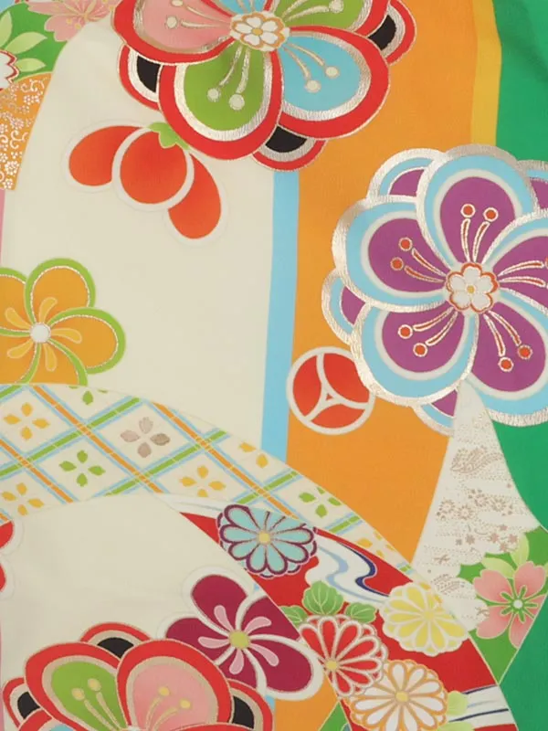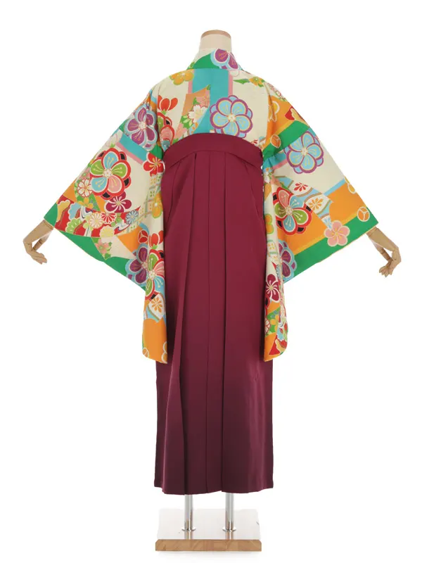 卒業袴レンタルh284 グリーン地 古典柄 x 紫袴