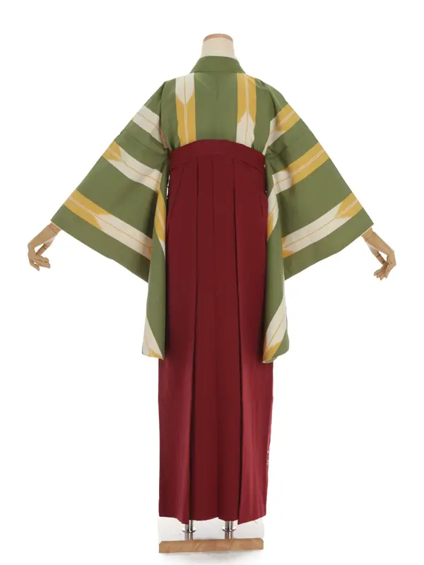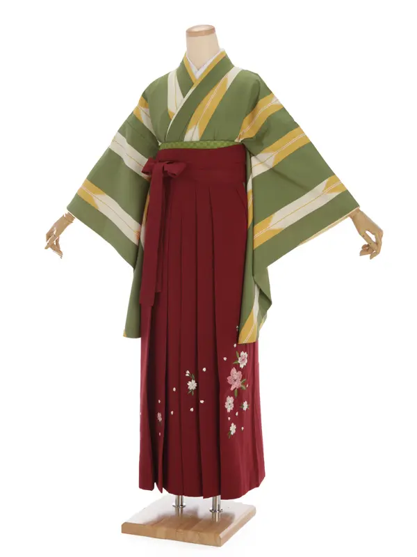 卒業袴レンタルh288 抹茶色 矢羽根 x 赤袴