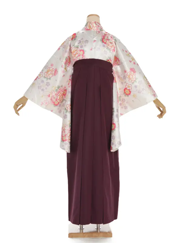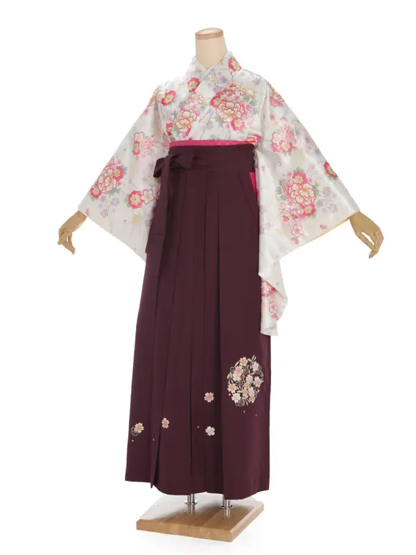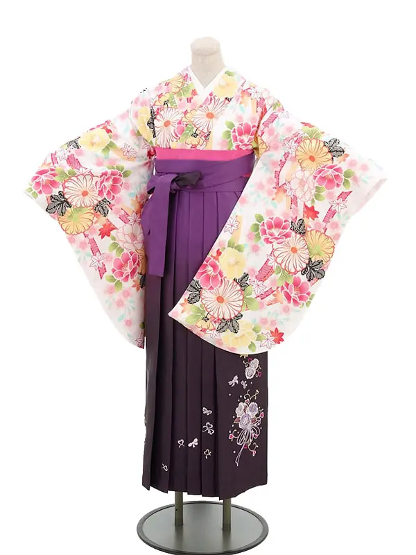 卒業袴レンタルh301 白地 ラメ 花柄 x 紫袴