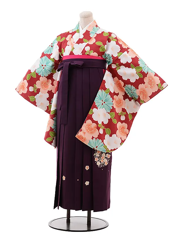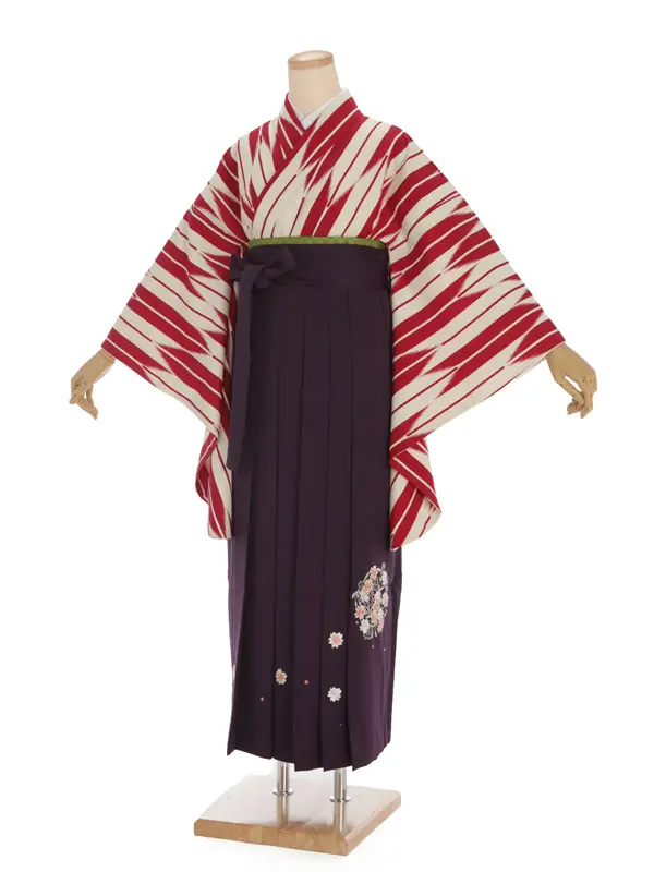 卒業袴レンタルh303 赤白 矢羽根 x 紫袴