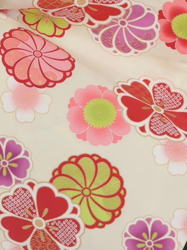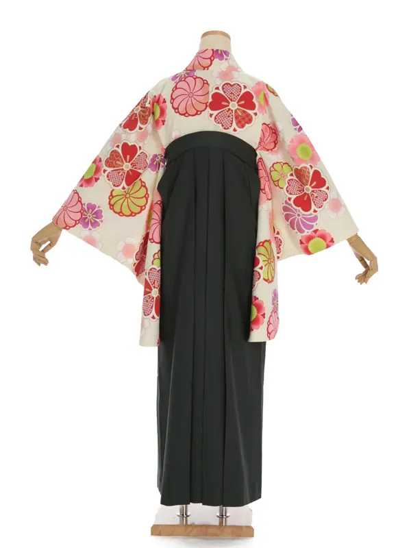 卒業袴レンタルh304 クリーム地 花柄 x グリーン袴