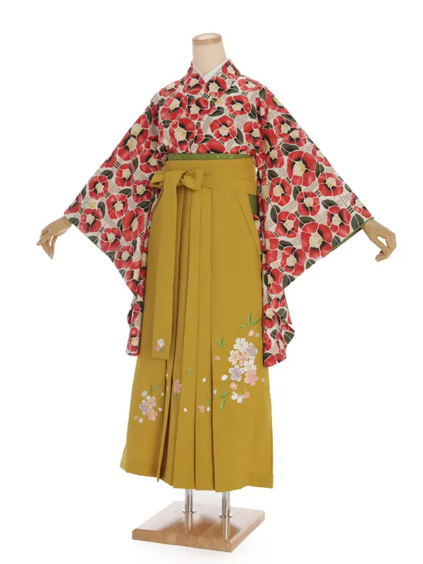 卒業袴レンタルh306 ベージュ地 ぼたん x からし袴