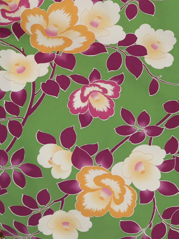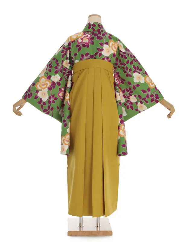 卒業袴レンタルh308 グリーン地 つばき x からし袴