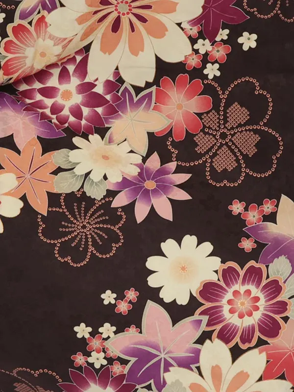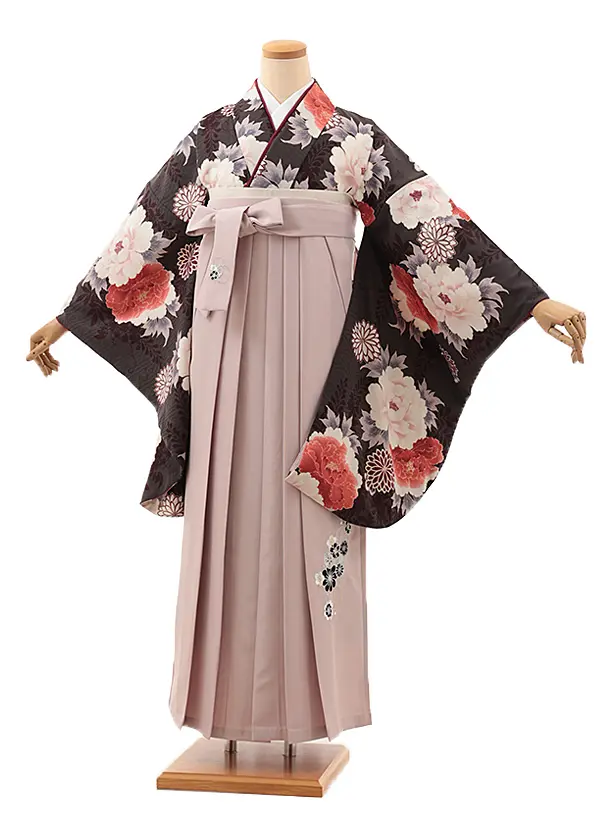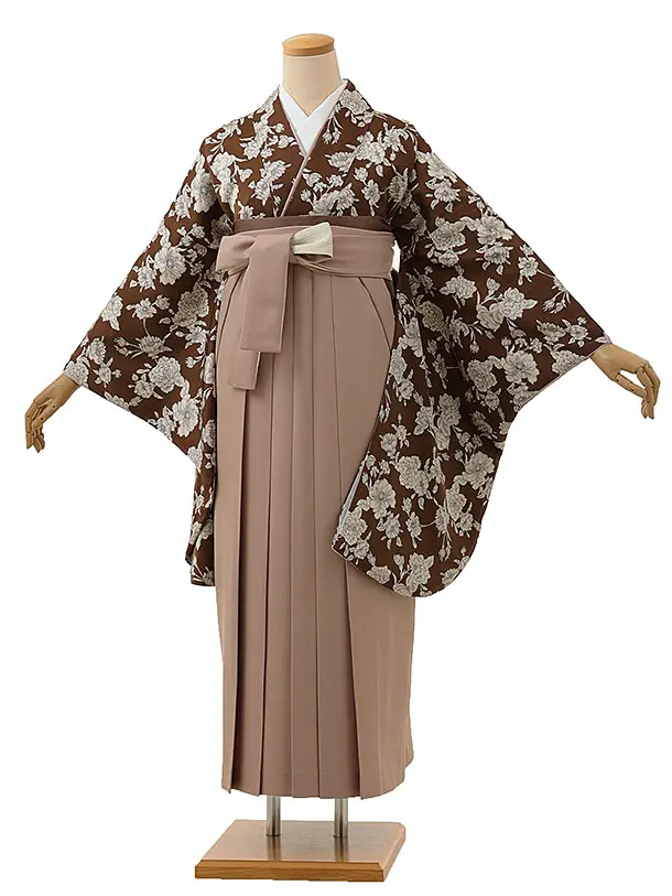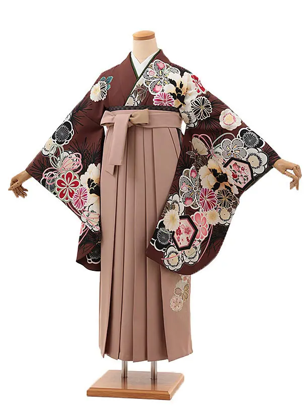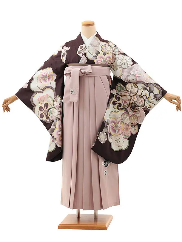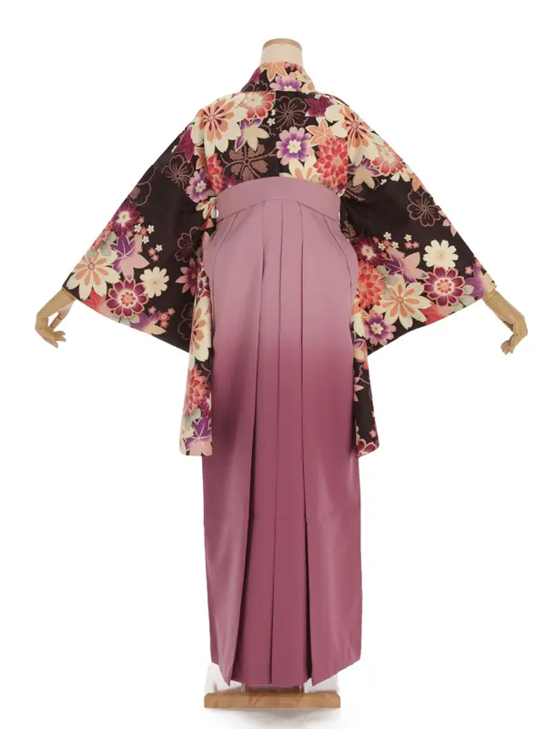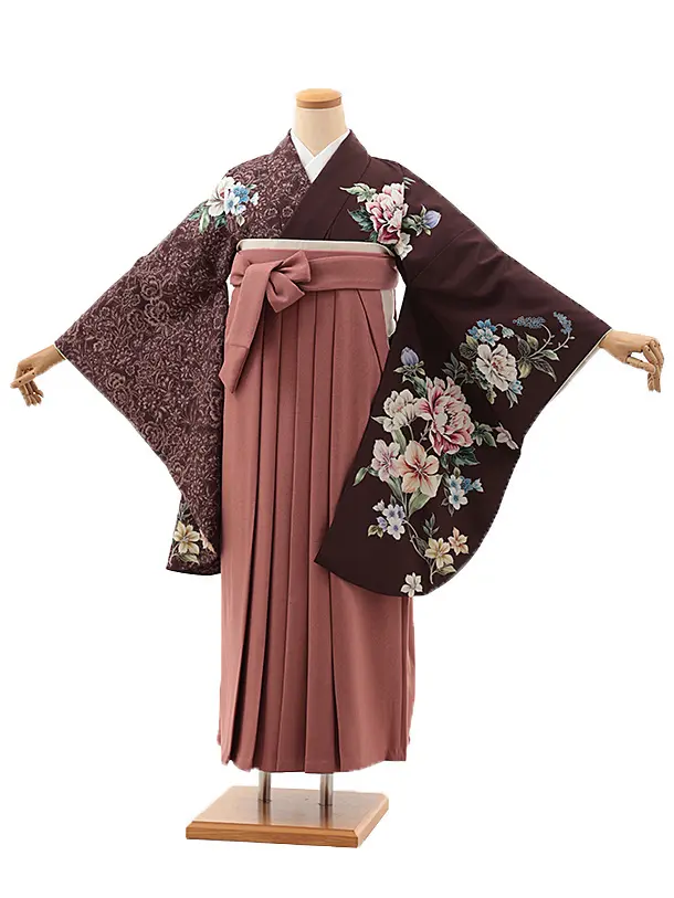 卒業袴レンタルh312 濃茶 花柄 x ピンク袴