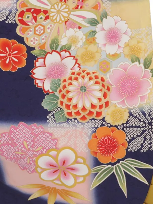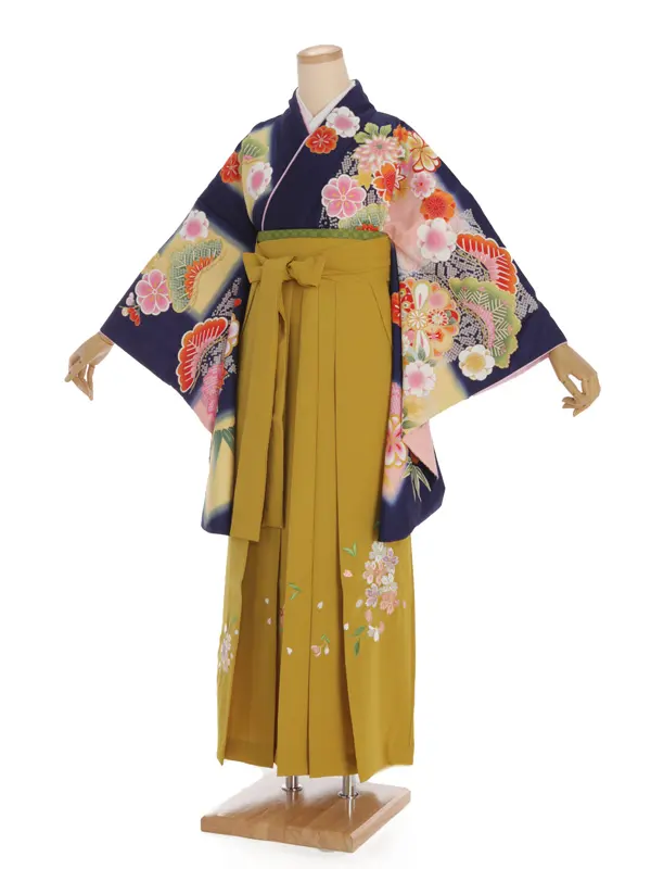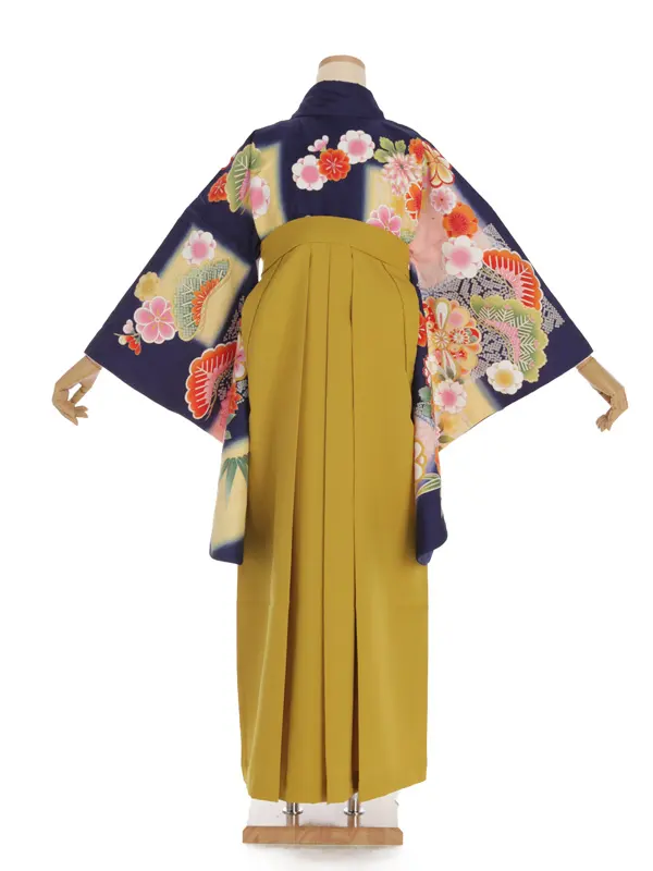 卒業袴レンタルh315 ネイビー 古典柄 x からし袴