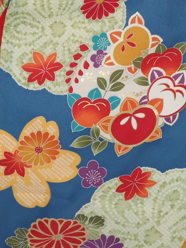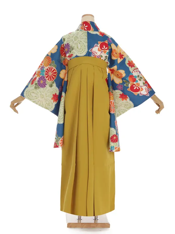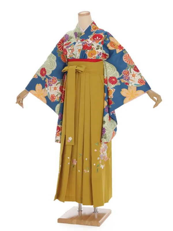 卒業袴レンタルh318 ブルー地 橘 x からし袴