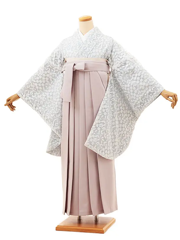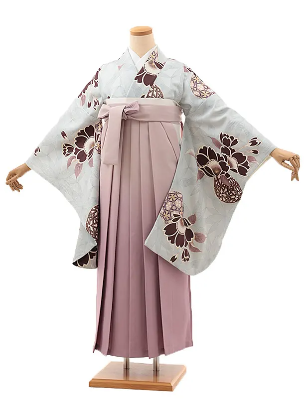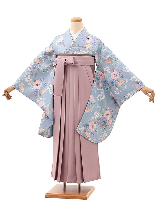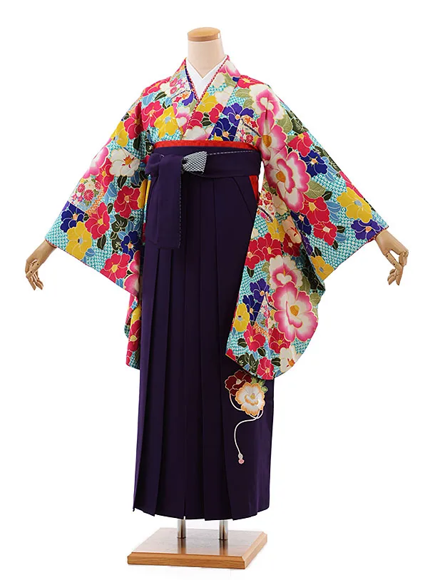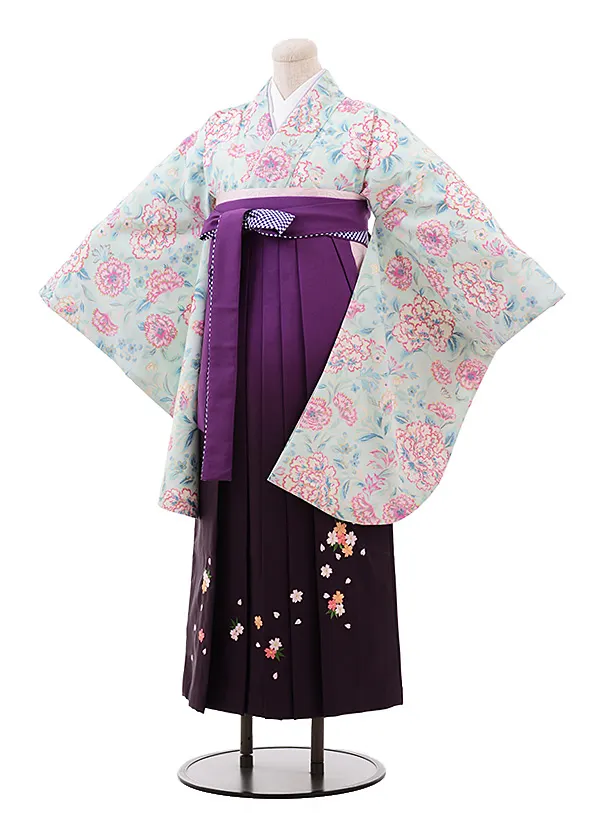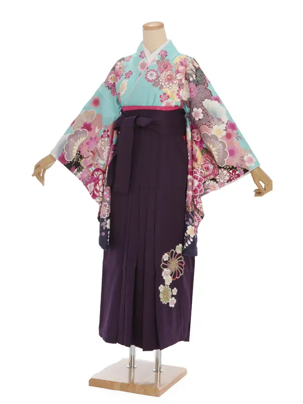 卒業袴レンタルh332 水色 古典柄 x 紫袴
