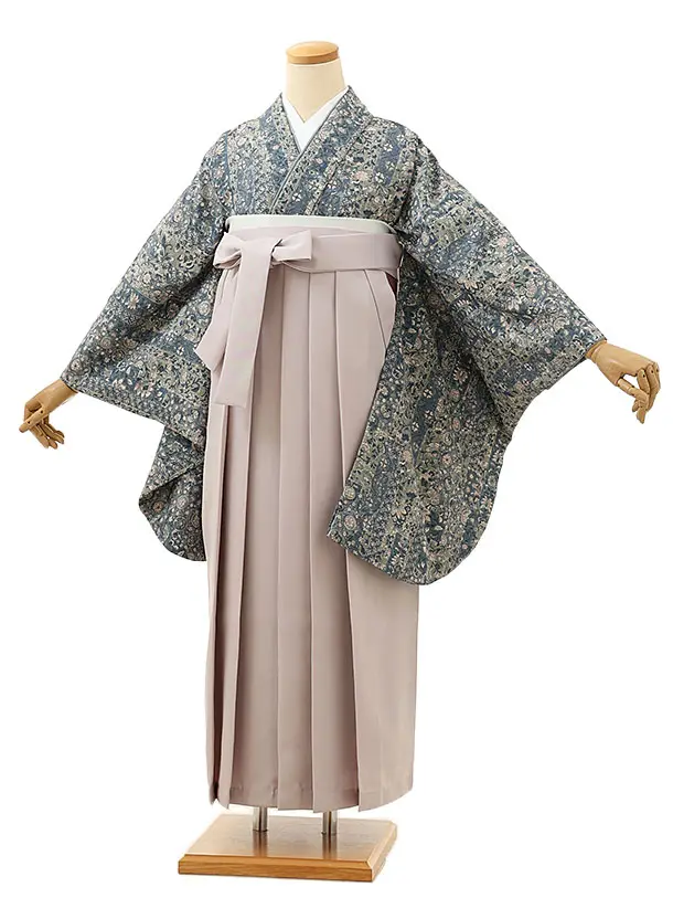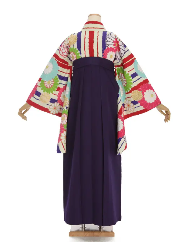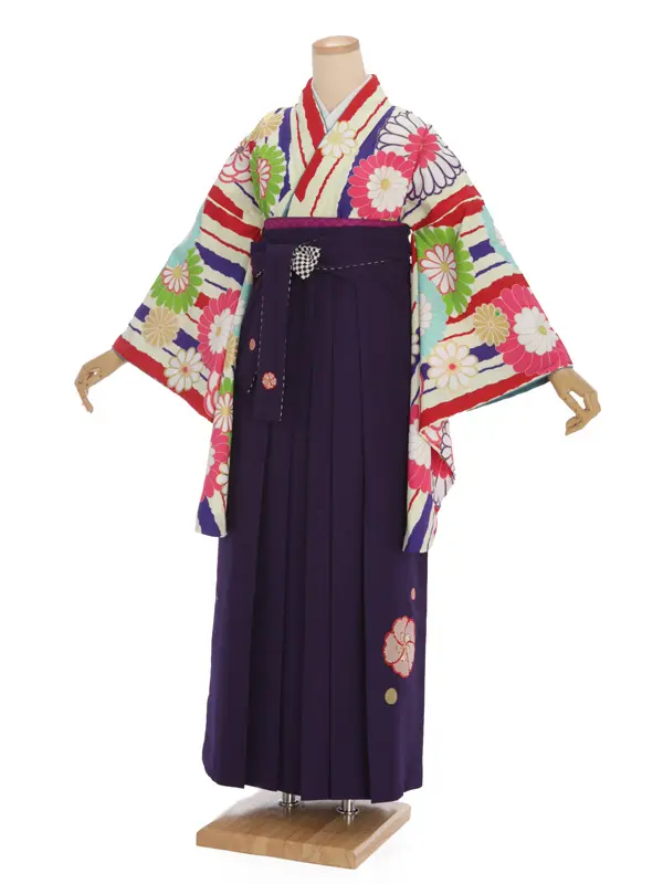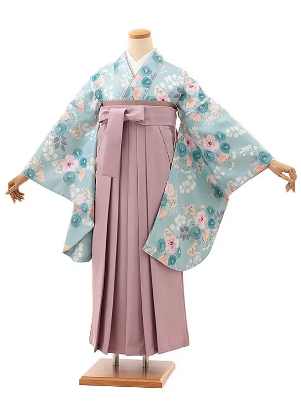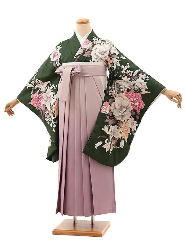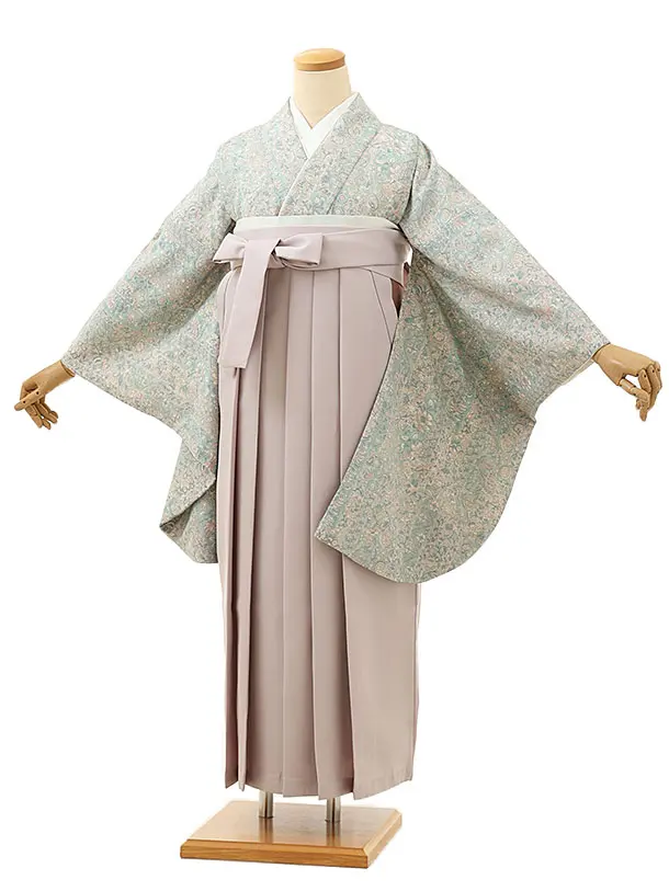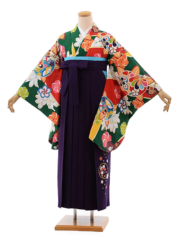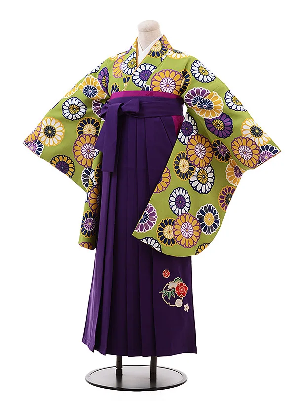 卒業袴レンタルh340 うす黄緑 菊 x 紫袴
