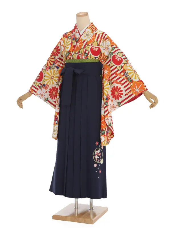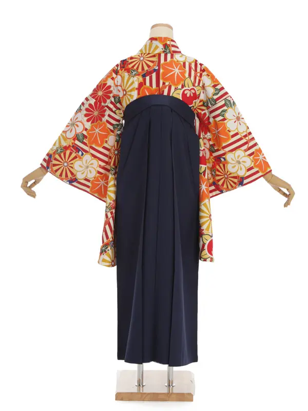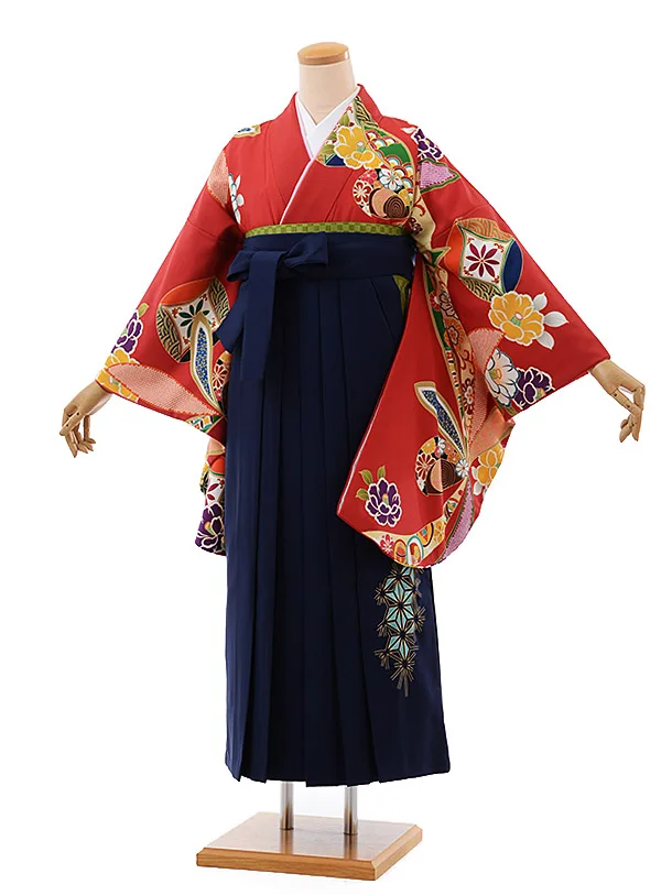 卒業袴レンタルh346 赤 ストライプ x 紺袴